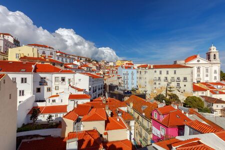 Cityscape view on the old town in Alfama district during the sunny day in Lisbon city, Portugal