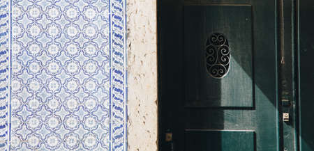 Typical architecture of Algarve vintage style doors, located in Olhao, Portugal.