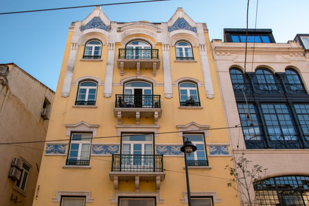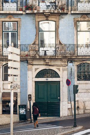 Lisbon, Portugal - December 28, 2024: The facade of an old building in central Lisbon, showcasing historic charm and architectural details