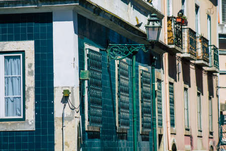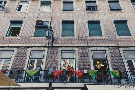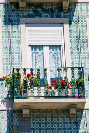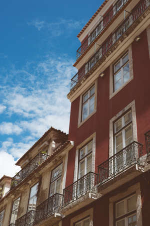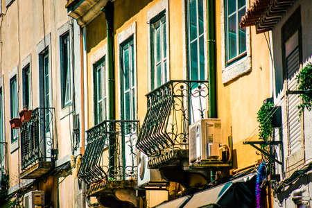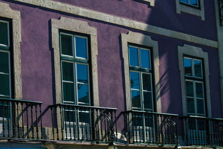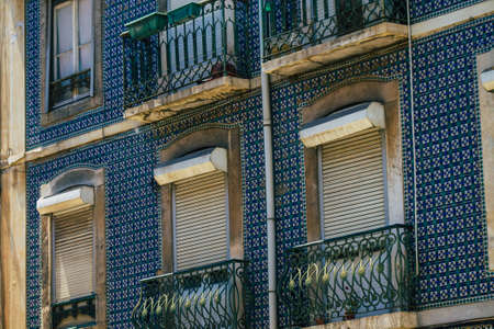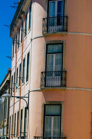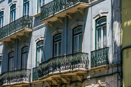 Lisbon Portugal july 30, 2020 View of window on the facade of ancient historical buildings in the downtown area of Lisbon, the coastal capital city of Portugal and one of the oldest cities in Europe