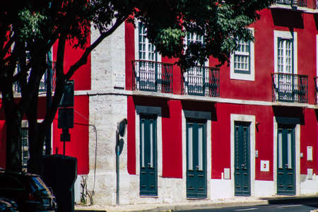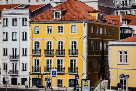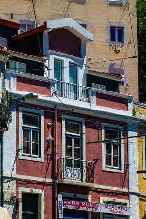 Lisbon Portugal july 26, 2020 View of classic facade of ancient historical buildings in the downtown area of Lisbon, the hilly coastal capital city of Portugal and one of the oldest cities in Europe