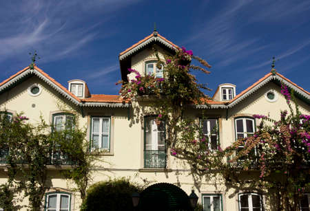 SINTRA, PORTUGAL - OCTOBER 25 2014: Private villa in Sintra city, Portugal, historic facade with flowers