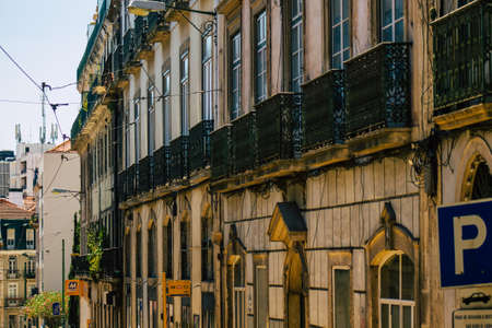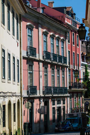 Lisbon Portugal july 24, 2020 View of classic facade of ancient historical buildings in the downtown area of Lisbon, the hilly coastal capital city of Portugal and one of the oldest cities in Europe