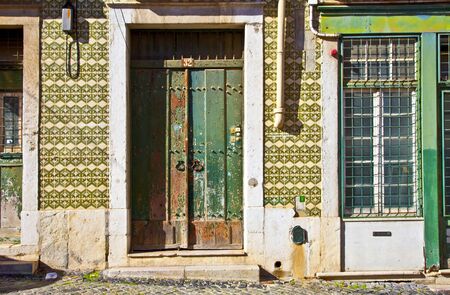 Colorful facades and door with Traditional decoration - Lisbon, Portugal