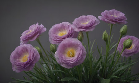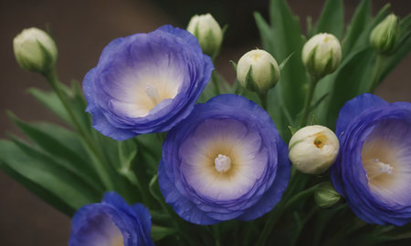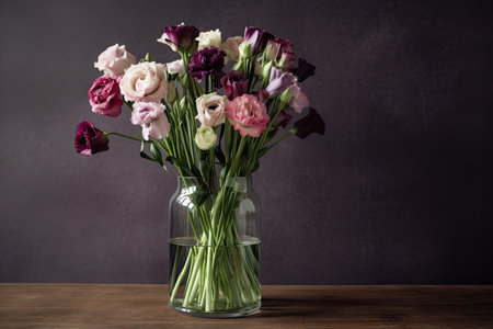 a cluster of eustoma blooms arranged in a vase, created with generative ai