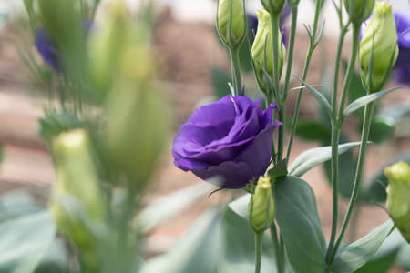 A bouquet of beautiful freshly cut purple eustoma on a one ton background. Background with beautiful colors