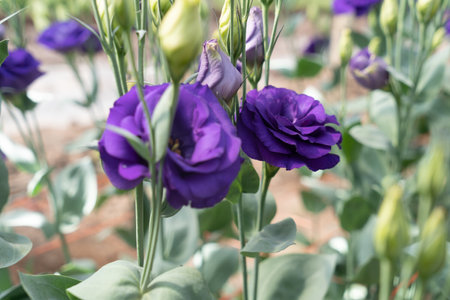 Close-Up of flowering Lisianthus or Eustoma plants in garden