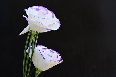 Eustoma flowers on a black background. Place for text.
