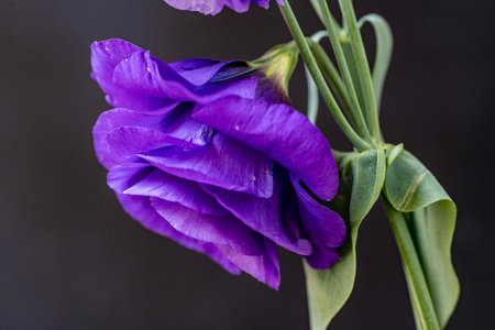 purple eustoma flowers on a dark background close-up