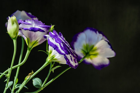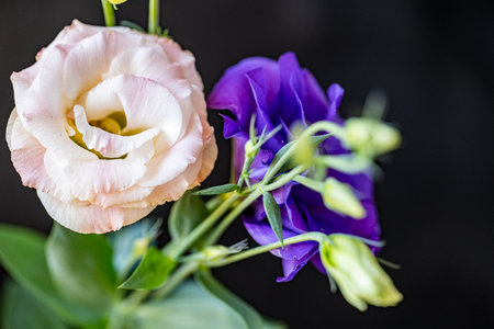 Eustoma flowers on a black background. Shallow dof.