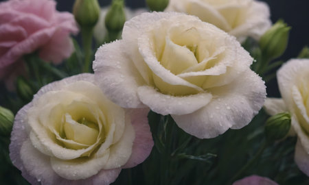 beautiful bouquet of white and pink eustoma flowers close up