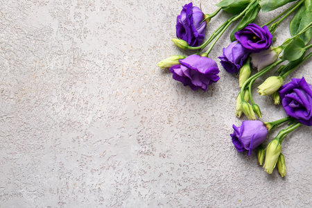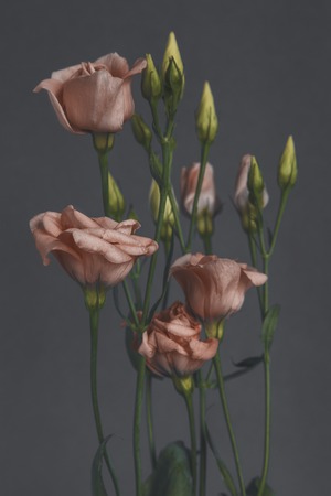 Purple eustoma flowers on gray background. Close up.