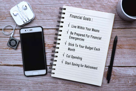 Notepad and phone on table with new year resolution