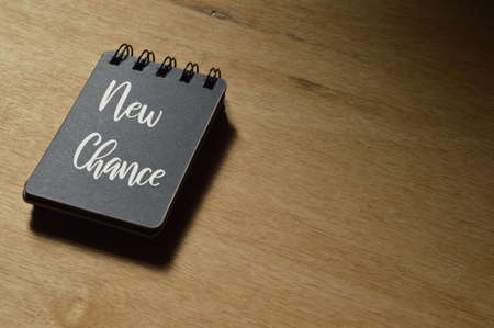 365 new days, 365 new chances. Letter board with motivational quote on dark wooden background with notepad and coffee. New year resolutions mockup