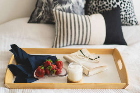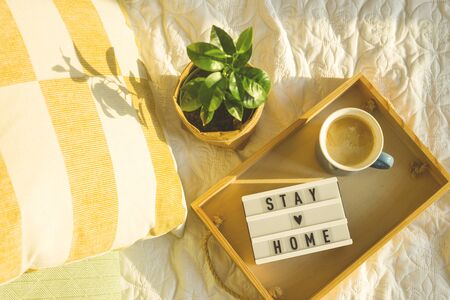 Stay home concept of self-isolation during the Covid-19 coronavirus pandemic. Cozy light home interior.