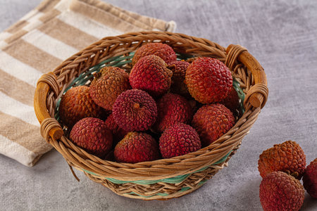 Ripe lichi on a straw basket