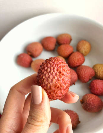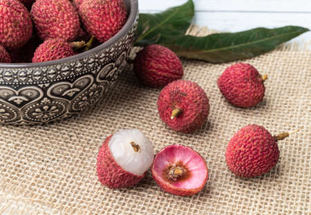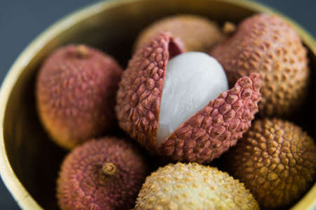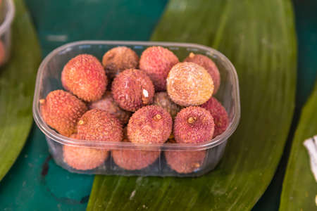 Nuomici, one of the most popular litchi cultivars. Summer Seasonal tropical Fruits.
