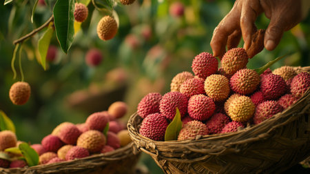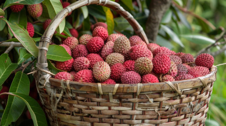 A basket filled with freshly picked lychee a popular tropical fruit waiting to be made into a homemade jam