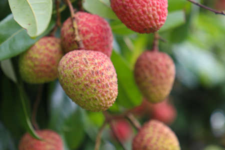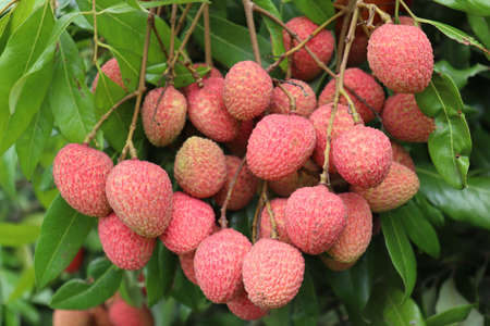 Summer season fresh juicy lychee fruit ready to pluck from tree organic fresh seasonal fruit