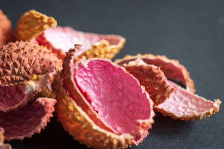 Close up of red lychee fruit.