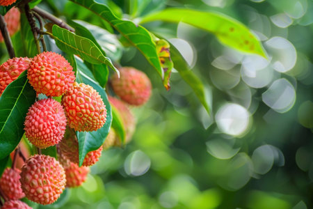 Fresh lychee fruits on the tree with bokeh background