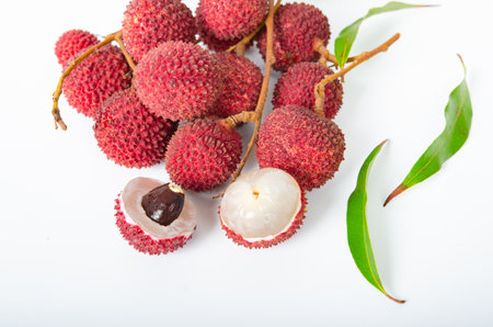Fresh and sweet organic lychee on white background