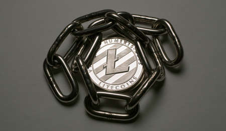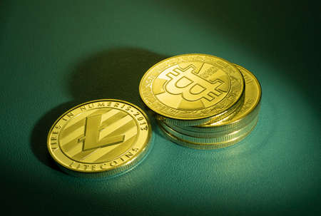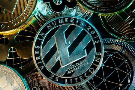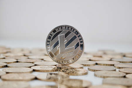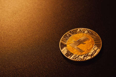 Litecoin cryptocurrency, blockchain technology decentralized currency coin, conceptual image with selective focus