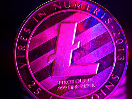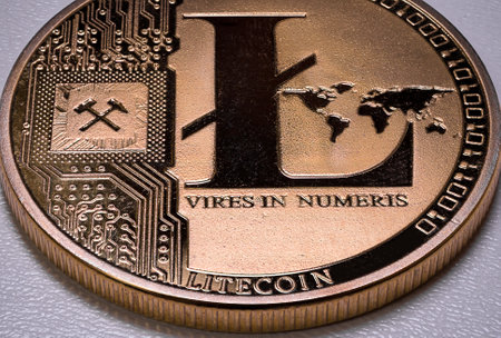 Macro shot of a Litecoin coin Crypto currency coins