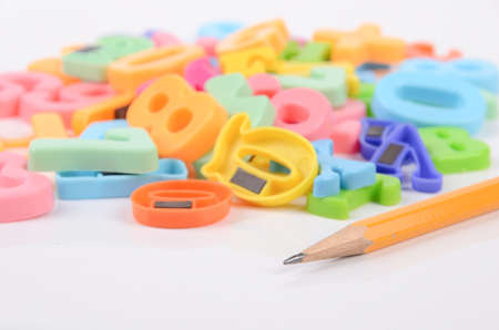 School supplies and stationery.Back to school concept. Frame with various colored stationery. copy space.Teaching children primary school.stationery for the study of mathematics and the alphabet