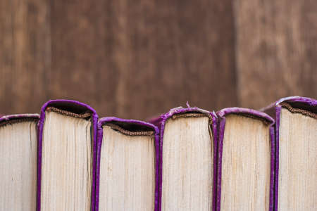 Background From Old Books. Top view of chaotically standing old and used books or hardcover textbooks. Book background template for (wisdom, science and education). The concept of reading and writing