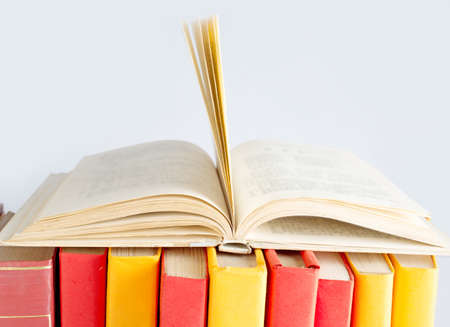 Old hardback books or textbooks. Education concept.