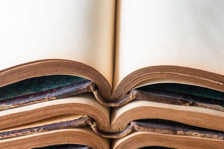 Pile of old opened books with blank page