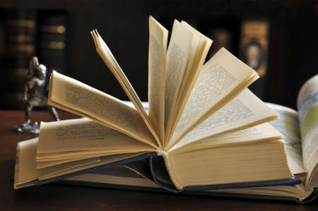 Open Book on a pile of old books, reading,education,learning concept,panoramic, good copy space