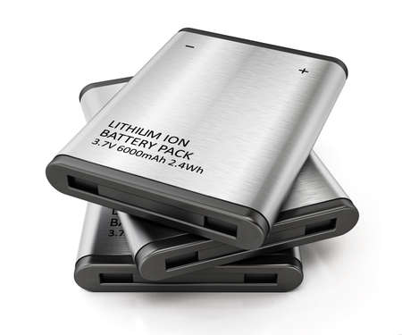 Generic lithium Ion battery stack isolated on white background. 3D illustration.