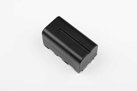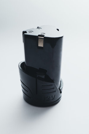 Rechargeable battery for electric cordless screwdriver on a white background. Selective focus, copy space