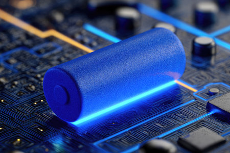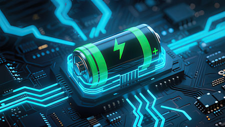 Explore the captivating design of futuristic battery cells featuring glowing blue and green hues, representing innovative energy solutions and advanced technology in modern applications.