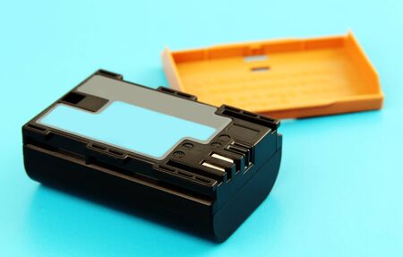Tyumen, Russia-March 15, 2021: sony NP-FW50 camera battery on yellow background.