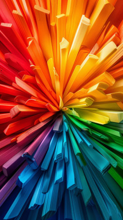 Dynamic and vibrant abstract pattern featuring a radial explosion of rainbow-colored strips, creating a visually stunning effect.
