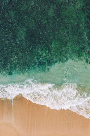 Sea background Aerial view Top down sea waves crashing on sandy beach beautiful sand sea surface in Phuket thailand