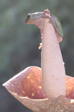Australian green tree frog (Ranoidea caerulea/Litoria caerulea) Daintree Rainforest