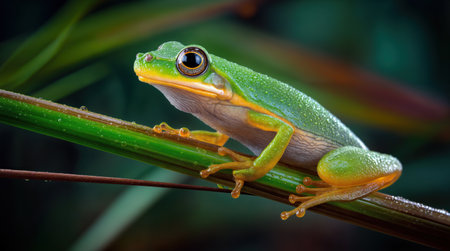 Green toad watching wet forest branch beauty generated by artificial intelligence