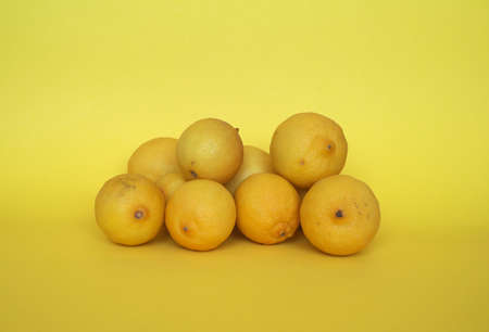 lemon fruits (scientific name Citrus limon) over yellow background