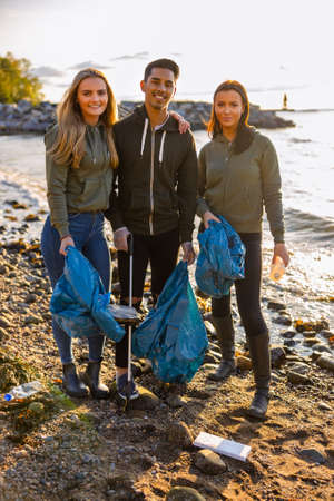 volunteers collect plastic bottles in garbage bags ecology natural pollution garbage care charity volunteer community environment young sincerity Recycling that can be sold as fami