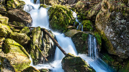 A low angle of Burgbach waterfall in the Black Forest, Germany