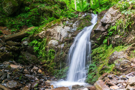 Guk Falls breaks through rocks in Carpathians mountains. Travel concept.