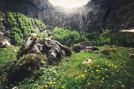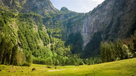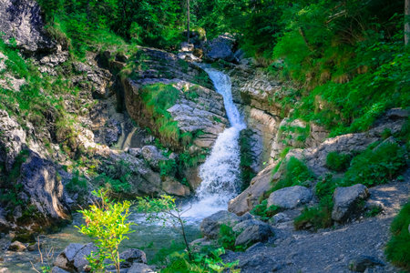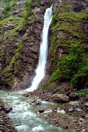 Roethbachfall waterfall in germany near lake Obersee in Bavaria in summer