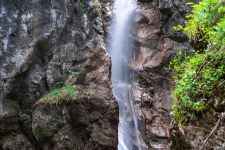 Long exposure of hidden secret spot waterfall in Orrido dello Slizza Gailitz canyon gorge near Tarvisio Friuli Venezia Giulia Italy alps Europe