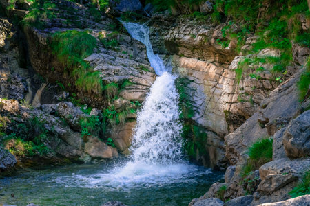 Summer landscape. Rocky waterfall in the mountains. Balea waterfall