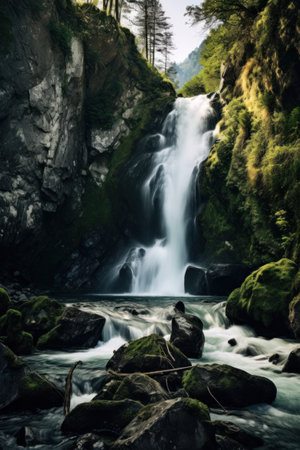 A Mesmerizing view of the Geroldsau waterfall with a cascade of water and green trees, Germany