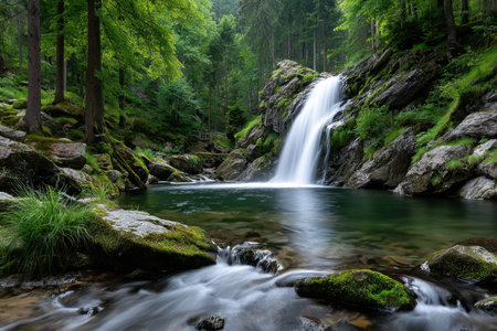 Waterfall Stream Rocks cascade through rocks forming pool for serene natural beauty